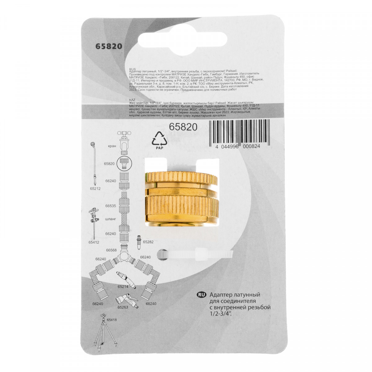 Адаптер латунный, 1/2-3/4, внутренняя резьба, с переходником Palisad