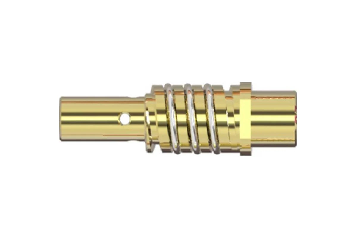 Вставка наконечника с пружиной (держатель наконечника) предназначена для фиксации токопроводящего наконечника, в некоторых случаях играет роль диффузора для распределения газа. Диаметр резьбы М6.Применяется с горелками:GOODEL MIG-15.Технические характеристики:диаметр проволоки 0,6-1,0 мм