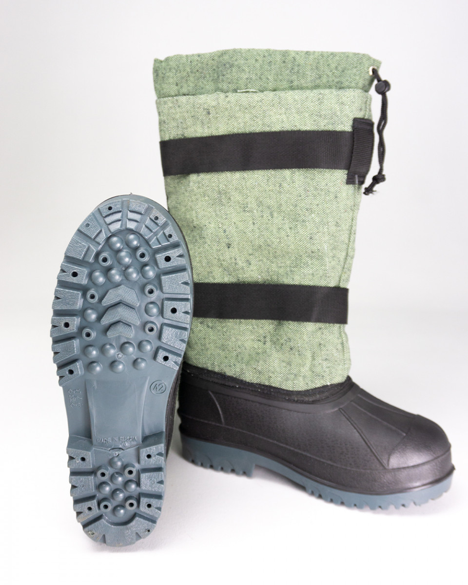 Общая высота- 42 см. Размеры с 40 по 47. Галоша, изготовлена методом двухкомпонентного литья. Специальный морозостойкий состав отечественного производства , стойкий к истиранию, антискользящий. Галоша НС, МБС, КЩ20 с композитным подноском МУН200. Шпора для удобства снятия. Протектор, препятствующий скольжению. Возможность ошиповки под заказ. Комфортная температура до – 30. Голенище двухслойное. Ткань голенища- брезент с ОП, плотность 540 г/м. По голенищу снизу внутренней стороны- двойной слой ткани от прошаркивания, шлевка под манжетой для просушки. Утепляющий слой- нетканое полотно. Метод крепления- прошивной через тесьму, в две строчки нитками ЛЛ, ЛХ на 100. Утепляющий чулок 3-х слойный: фольга и два слоя нетканого полотна ТМ Полизон. Дополнительная войлочная стелька в галоше. Фиксация на ноге – двумя стропами на 40 мм. с карабинами, затягивающийся через фиксатор шнур по верху голенища.