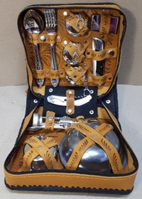 Отличный подарок для любителей туризма и рыбалки, а также активного отдыха. Подходит для небольших компаний. Набор внутри и снаружи, фляга декорированы натуральной кожей с рисунком, сделанным по технологии художественного выжигания. Изделия изготовлены из нержавеющей стали, благодаря чему будут служить владельцу долгие годы. Размер 23*20*11смКомплектация: