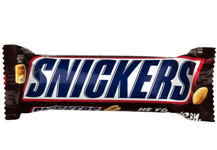 Шоколадный батончик Snickers - это популярный батончик с оригинальной начинкой из цельного жареного арахиса, фундука, нуги и карамели, покрытый сверху слоем молочного шоколада. В одном батончике содержатся примерно 205 килокалорий, поэтому он с легкостью справляется даже с сильными приступами голода.