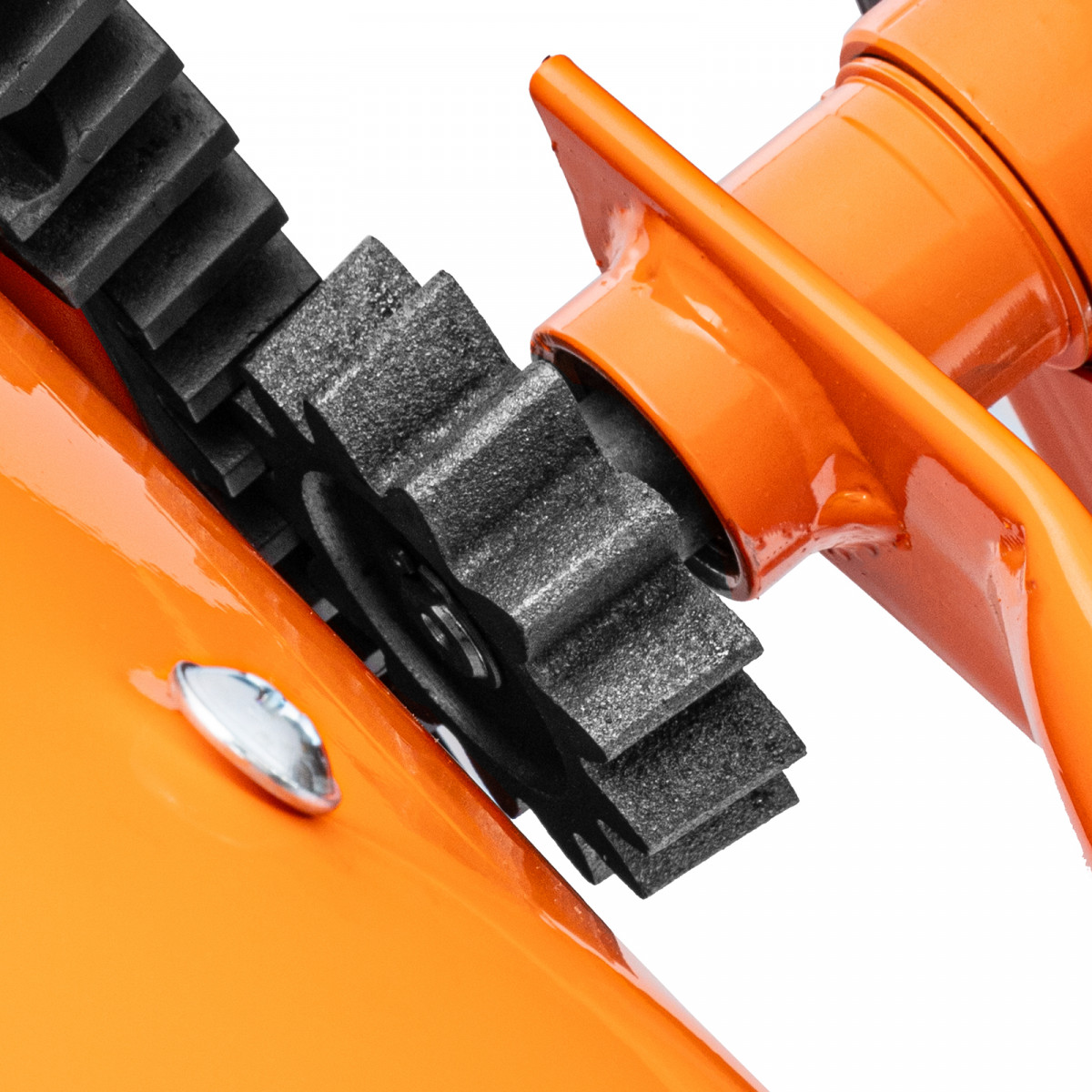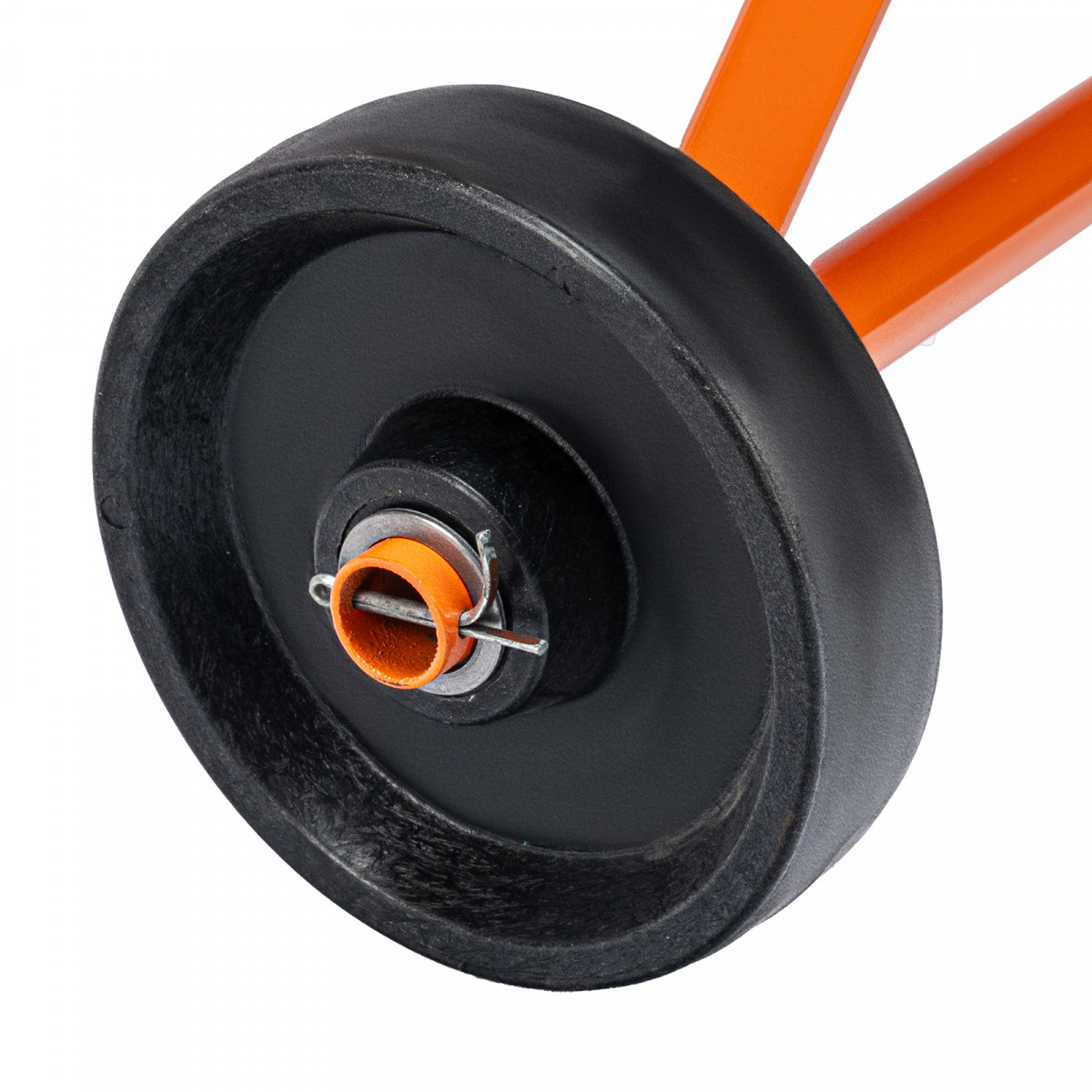 - Удобная загрузка и выгрузка смеси — барабан наклоняется при помощи маховика и легко фиксируется в нужном положении.