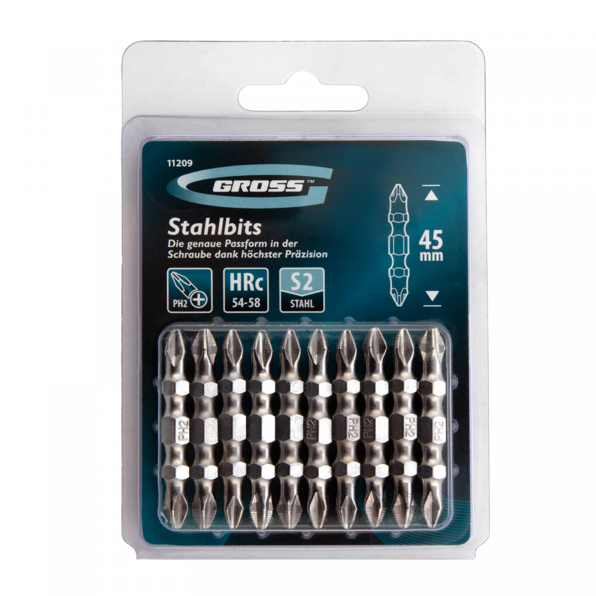 Бита двухсторонняя, PH2-PH2 х 45 мм, сталь S2, 10 шт. Gross