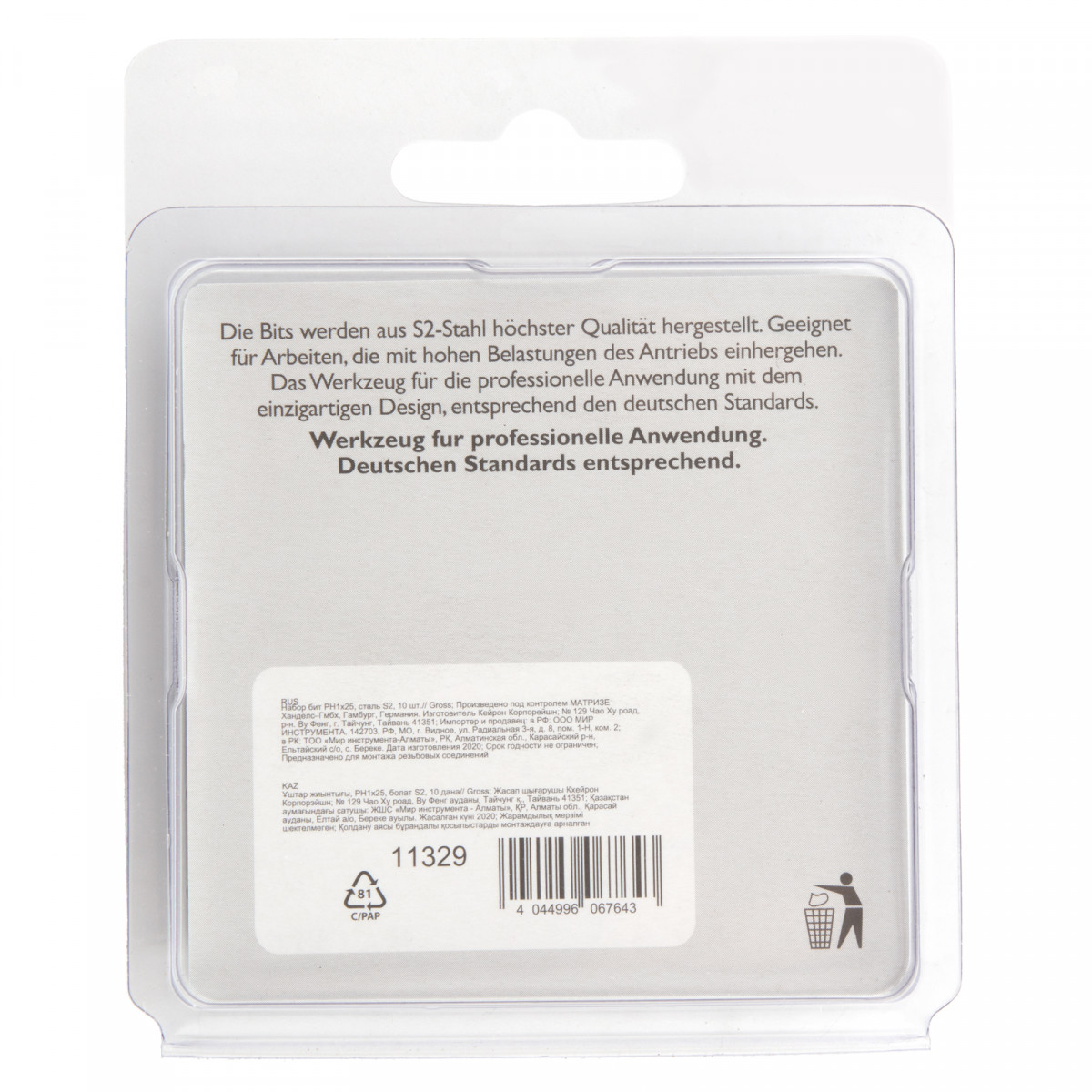 Набор бит Gross 11329 состоит из 10 наиболее востребованных крестообразных насадок типа PH1 длиной 25 мм, с хвостовиком 1/4 дюйма, изготовленных из стали S2 и предназначенных для использования с шуруповертами и отвертками-адаптерами. За счет оптимальной геометрии и высокой точности исполнения шлица биты не проскальзывают в головках крепежа. Оснастки используются для монтажа и демонтажа саморезов по дереву, шурупов и других резьбовых крепежей.