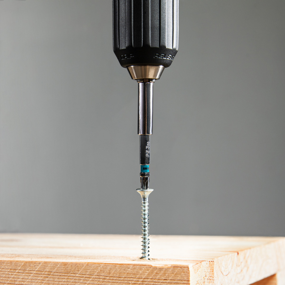 - Намагниченный шлиц — можно направлять шуруповерт с насаженным крепежом одной рукой, а другой придерживать закрепляемую деталь.