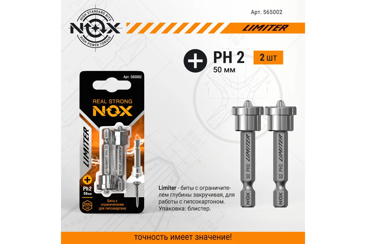 Биты NOX имеют высокую прочность и крутящий момент благодаря специальному составу стали и методу закалки. Качество продукции обусловлено использованием термически закаленной стали S2 высокой прочности 62 HRC. Высокая точность фрезерования форм. Ограничитель глубины выступает в роли стопора, позволяя контролировать глубину ввинчивания шурупа в мягкие материалы (гипсокартон, ГВЛ) и предотвращая повреждение поверхности.