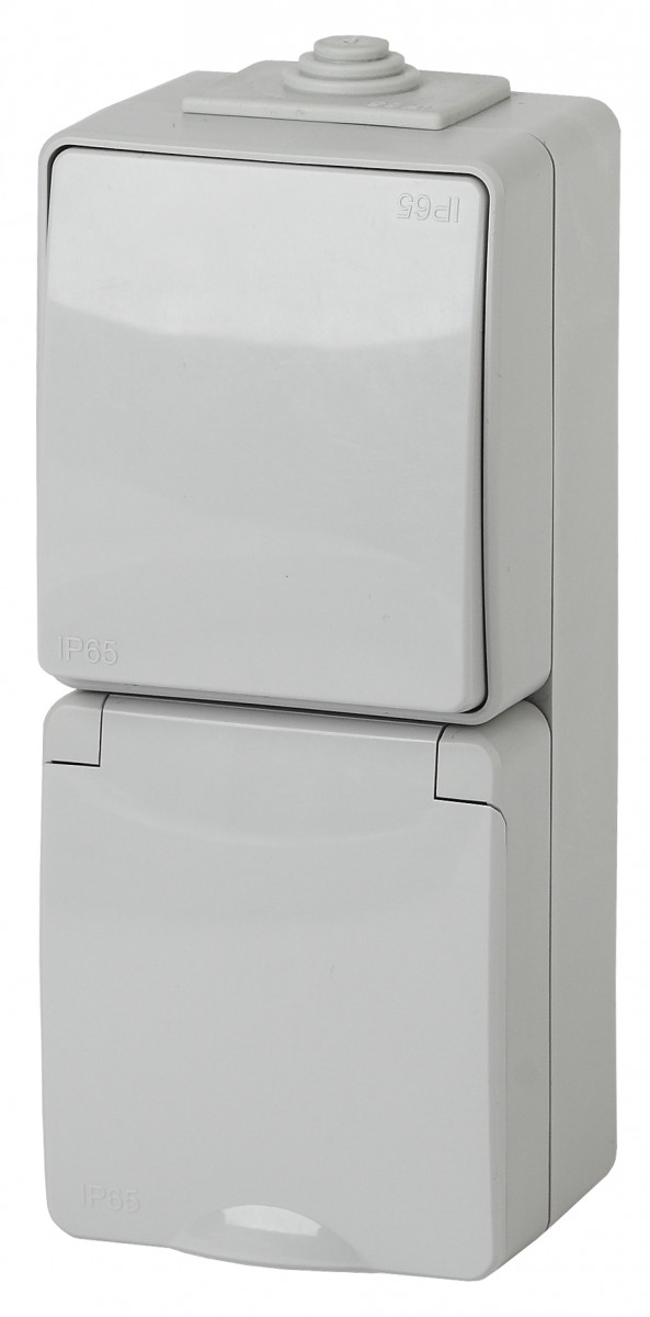 Блок ЭРА розетка+выключатель верт. IP65 16A(10AX)-250В ОУ Эра Эксперт серый 11-7607-03