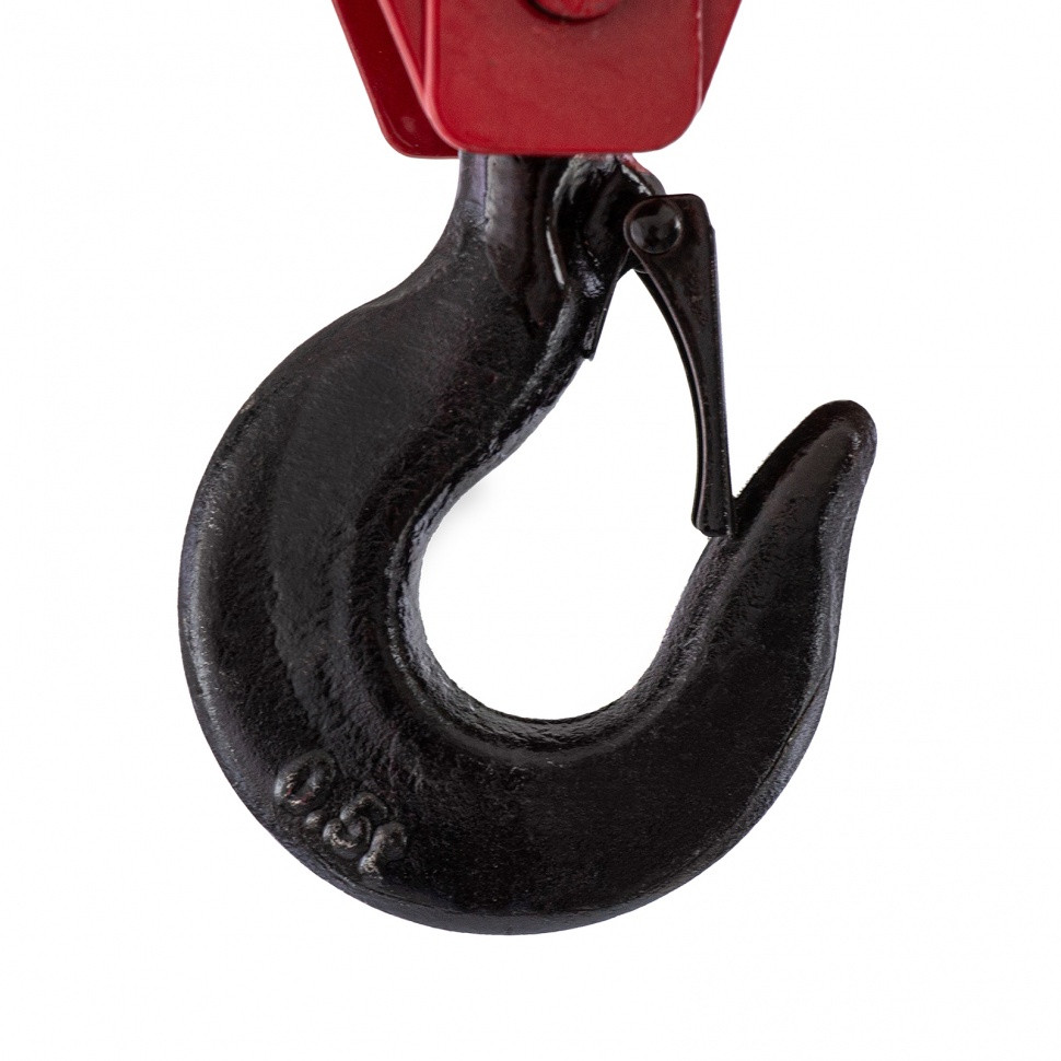 Кованая предохранительная защелка на крюке обеспечивает надежную фиксацию груза.