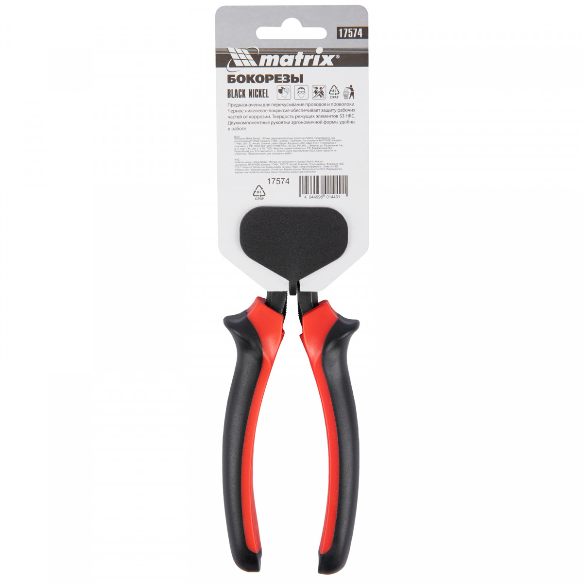 Бокорезы Matrix Black Nickel 17574 длиной 180 мм, с двухкомпонентными рукоятками, используются для разрезания проводов, кабелей, проволоки и перекусывания гвоздей. Пригодятся как начинающим мастерам, так и профессионалам при проведении монтажных и ремонтных работ.