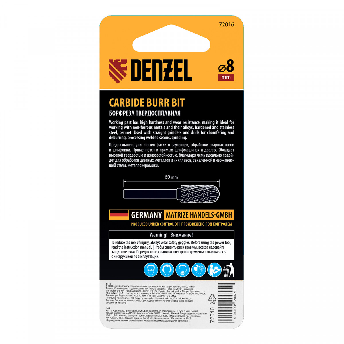 Борфреза по металлу твердосплавная, цилиндрическая закругленная, тип-С, 8 мм Denzel