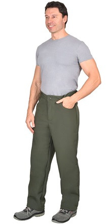 Брюки прямые, на притачном поясе, с застёжкой спереди гульфик на тесьму «молния». Брюки с боковыми внутренними карманами фигурным входом, на задних половинках с отрезной кокеткой. Ткань верха - «Софтшелл» состав: 100% п/э.; пл. 350 г/м ГОСТ 25295-2005