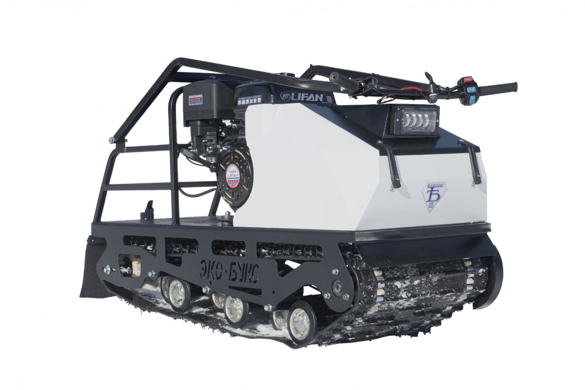 - Классическая гусеница шириной 500 мм, катковая подвеска и регулируемый угол атаки.