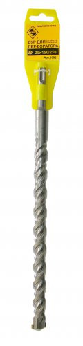 Бур (для перфоратора) называют также ударным сверлом SDS +, SDS max. В каталоге и на упаковке указывается общая длина; рабочая длина меньше общей длины на 60 мм у буров SDS-plus и на 120-130 мм у буров SDS-max. Засверливание длинным буром (от 450 мм) может привести к его поломке. Необходимо начинать сверление более короткими бурами (на глубину не менее 150 мм), в отдельных случаях выгоднее сверлить в несколько этапов, постепенно увеличивая длину бура. При сверлении глубоких отверстий одним длинным буром больше всего изнашивается его передняя часть, уменьшается диаметр сверлильной головки и спирали, бур приобретает форму конуса, из-за чего начинает заклинивать в глубоком отверстии, когда в него начинает заходить неизношенная, широкая часть спирали. Немаловажно и то, что при работе в несколько этапов перфоратор работает большим буром меньшее время, а, значит, меньше нагружается и изнашивается, а потери рабочего времени на замену бура компенсируются за счет того, что короткими бурами перфоратор сверлит быстрее.