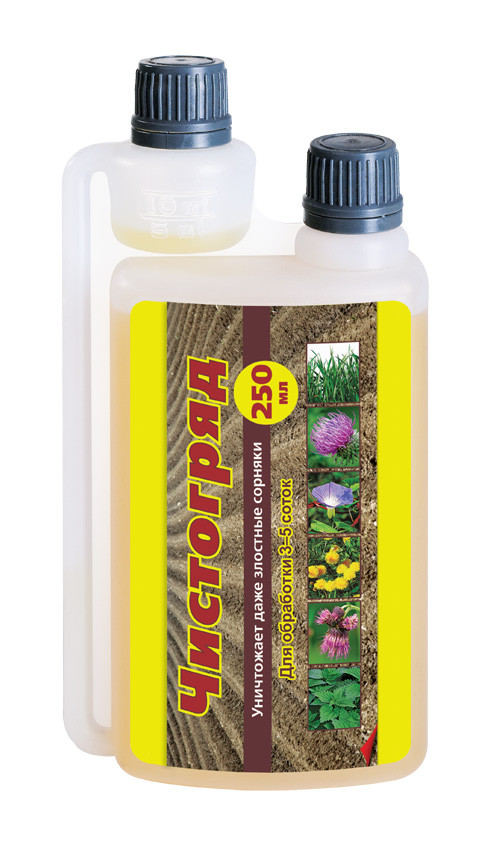 Флакон, для уничтожения однолетних и многолетних злаковых и двудол.сорняков, в том числе злостных. Применяется при опрыскивании вегет-щих сорняков до посадки картофеля,овощ.и цвет.культур,до посева газонов,при опрыск.в послеубор.период,на межах и т.п