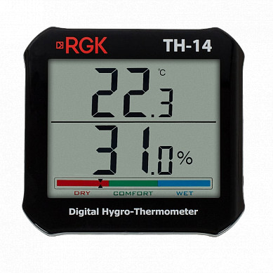 Цифровой термогигрометр RGK TH-14 служит для непрерывного измерения температуры в диапазоне от 0°С до + 50 °С с точностью ±0,5°С и влажности в пределах от 10% до 95% с точностью от 3%. Прибор является идеальным решением для контроля условий хранения продукции и материалов, а также для оценки климата в жилых или коммерческих помещениях.