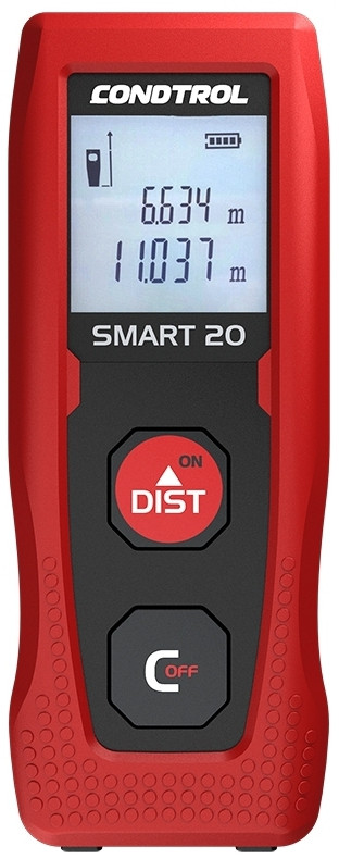 Лазерный дальномер SMART 20 – это доступная лазерная рулетка c двухстрочным дисплеем и эргономичным дизайном. Компактный дальномер с двухстрочным дисплеем, высокой скоростью измерения и встроенной функцией трекинга. Дальномер имеет надежную защиту от ударов и удобно лежит в руке благодаря эргономичному корпусу покрытому резиной. Эргономичный. Дальномер, благодаря своей форме, удобно лежит в руке, что облегчит Вам проведение большого количества замеров. Крупные кнопки управления позволят работать с дальномером одной рукой, а встроенная экран подсветка сделает работу в условиях плохого освещения более удобной. Компактный размер при доступной цене, высоко оценят как профессионалы, так и домашние мастера.