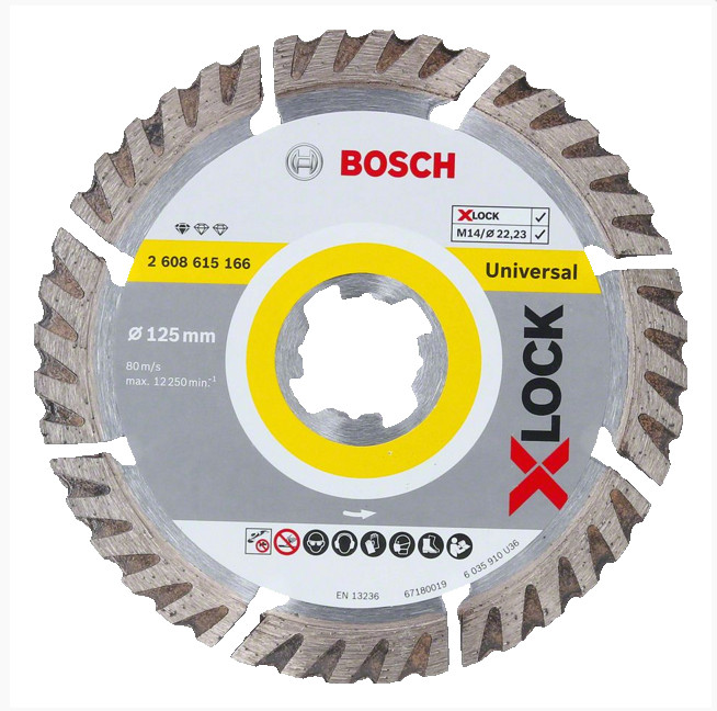 Алмазный отрезной диск X-LOCK Standard for Universal позволяет осуществлять надежную резку любых строительных материалов. Оптимизированная алмазная матрица обеспечивает надежный результат, благодаря высоким стандартам качества диска. Специализированный центр алмазной обработки Bosch в Швейцарии обеспечивает эти стандарты в результате непрерывного контроля качества. Быстрое крепление благодаря инновационной системе X-Lock.