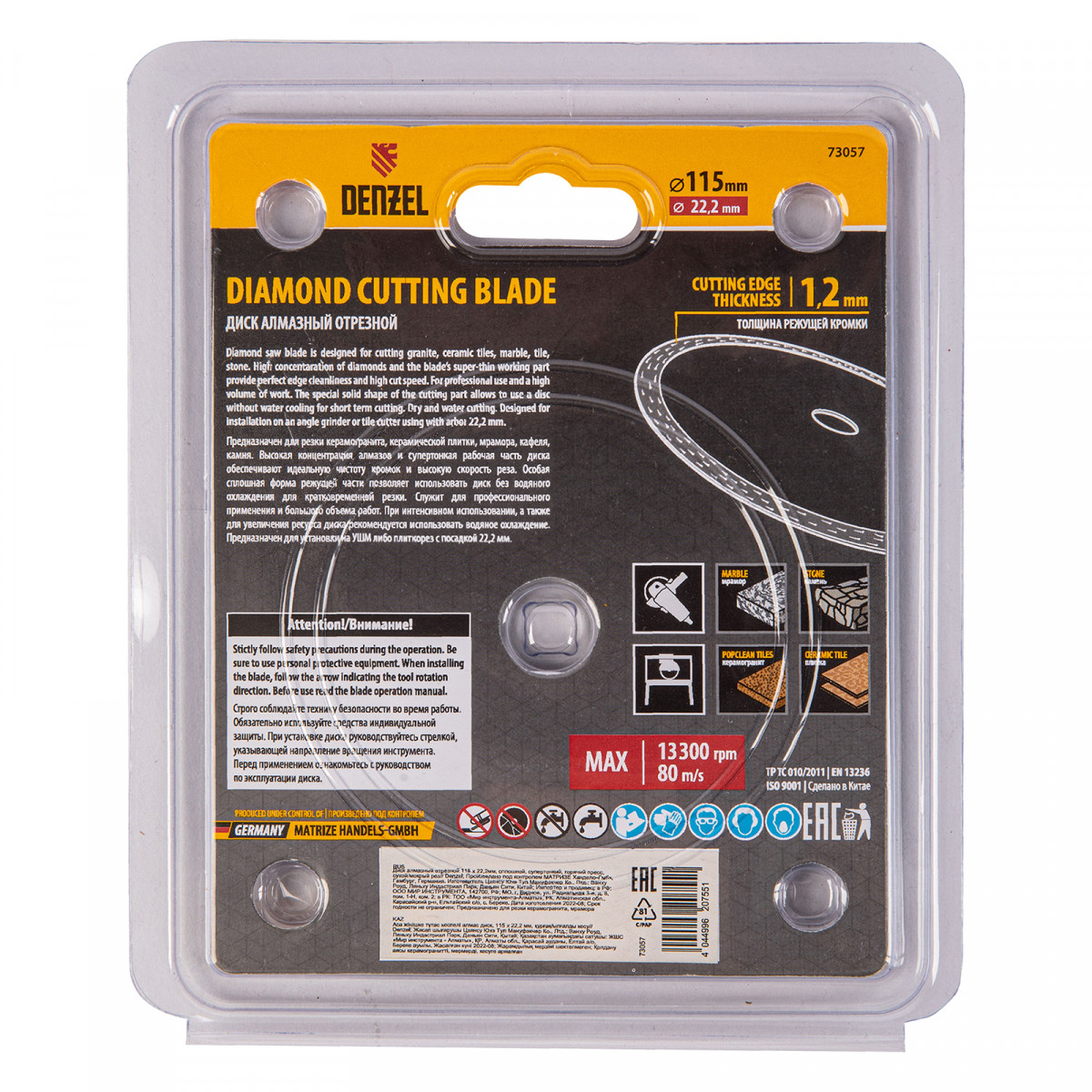 Сплошной отрезной алмазный диск Denzel 73057 диаметром 115 x 22,2 мм, супертонкий, изготовлен по технологии горячего прессования и предназначен для сухого и мокрого реза керамогранита, керамической плитки, мрамора, кафеля, камня. Устанавливается на углошлифовальную машину или плиткорез с соответствующим посадочным диаметром, подходит для выполнения большого объема работ.