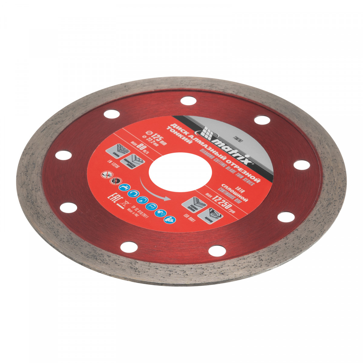 Диск алмазный, отрезной сплошной, 125 х 22.2 мм, тонкий, мокрая резка Matrix Professional