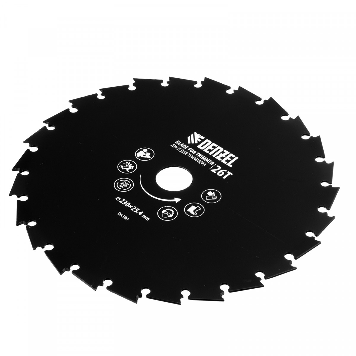 Диск для триммера Denzel 96380 с внешним диаметром 230 мм и посадочным — 25,4 мм, с 26 зубьями долотообразной формы, предназначен для скашивания травы и мелкого кустарника. Устанавливается на вал триммера с бензиновым двигателем. Диск пригодится для ухода за дачным участком.