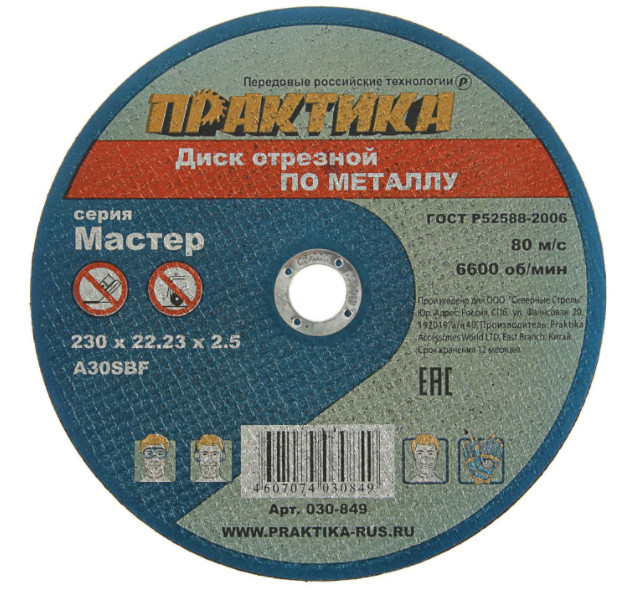 Диск отрезной по металлу 230*22,2*2,5мм ПРАКТИКА