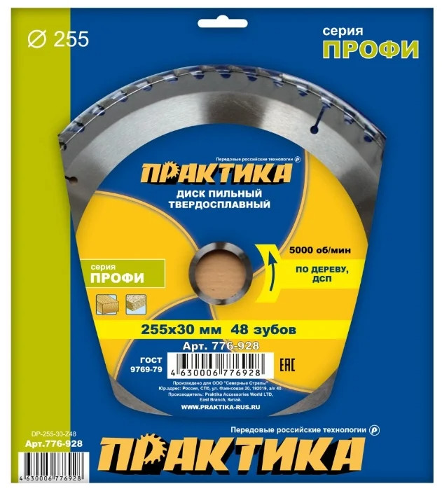 Диск пильный 255*30мм 48 зубьев по дереву, ДСП "Практика"
