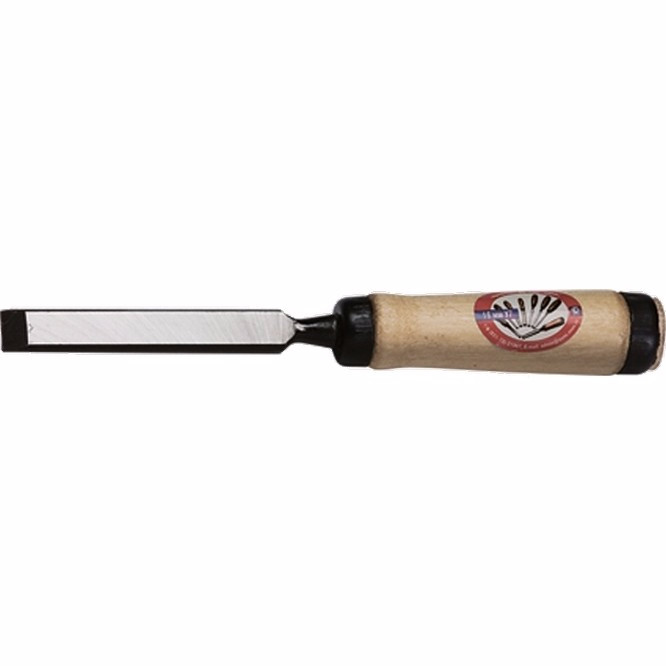 Лезвие стамески изготовлено из инструментальной углеродистой стали У7–У8. Рукоятка из древесины обработана бесцветным лаком для защиты от рассыхания и набухания, имеет на своем конце металлические кольца, препятствующие образованию расколов при ударе молотком. Используется в столярных работах.
