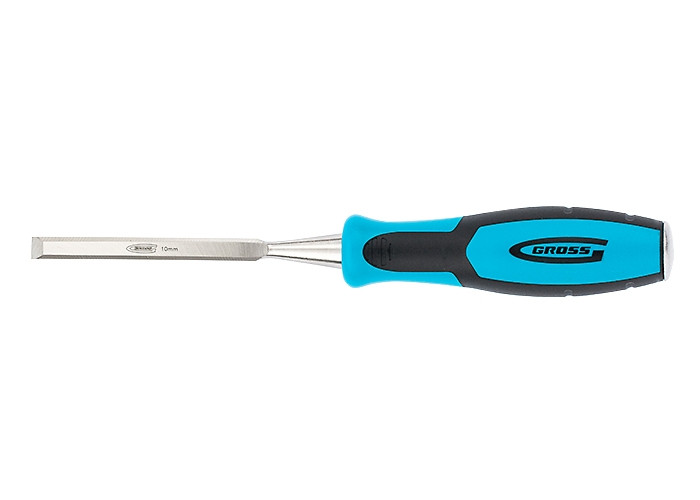 Долото-стамеска торговой марки GROSS предназначена для проведения столярных и плотницких работ, таких как выдалбливание пазов и гнезд, снятие фасок и шлицов и пр. Полотно стамески изготовлено из высококачественной инструментальной стали, обладая высоким параметром твердости (68 HRC). Рабочая кромка полотна шириной 6 мм заточена под углом 28 градусов и закалена на длину 7 мм. Литая двухкомпонентная рукоятка обеспечивает надежный и удобный захват. Металлический затыльник рукоятки позволяет при необходимости использовать ударный инструмент. Общая длина стамески составляет 285 мм, масса инструмента не превышает 210 г.