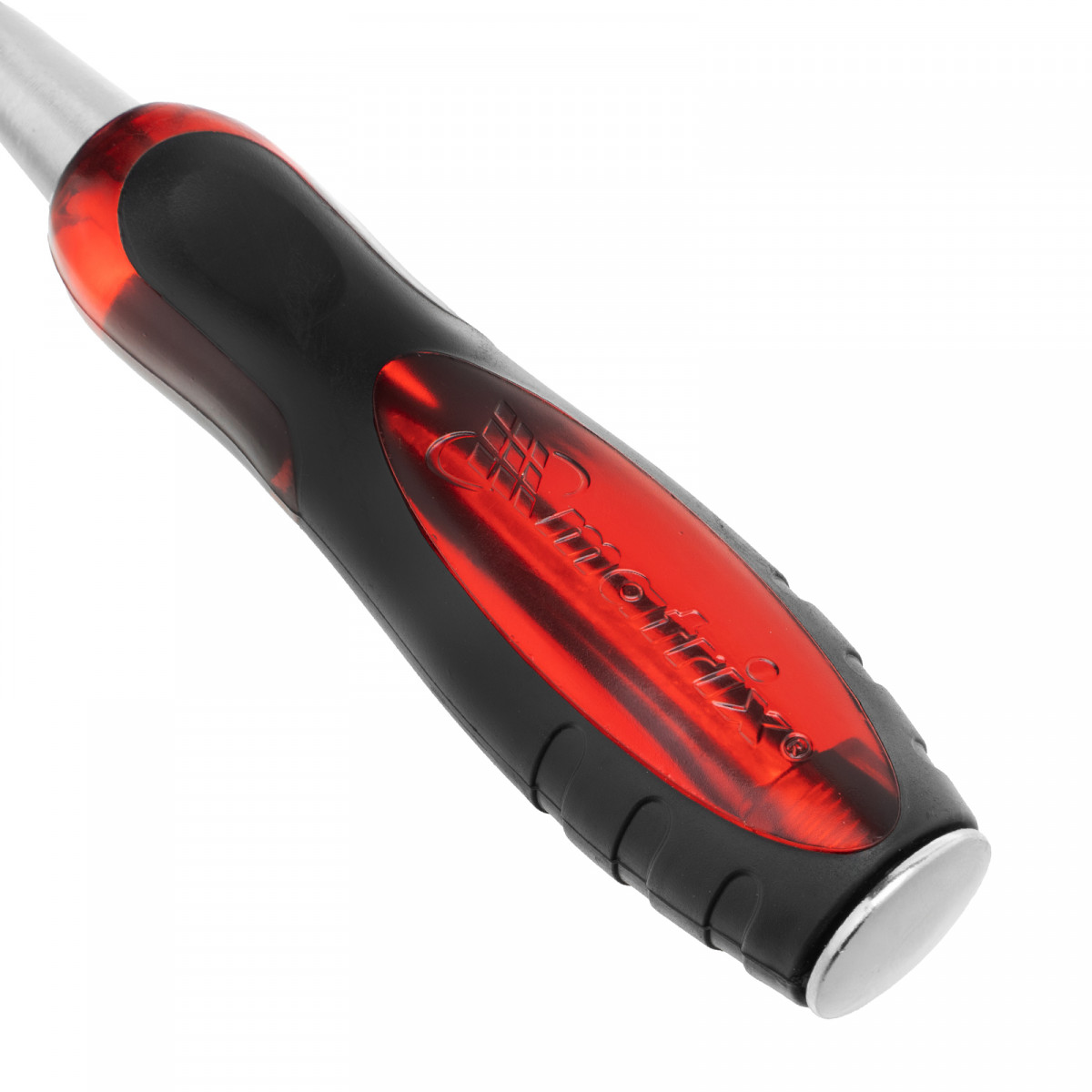 - Продуманная конструкция — металлический стержень, проходящий сквозь рукоятку, повышает прочность и долговечность инструмента.