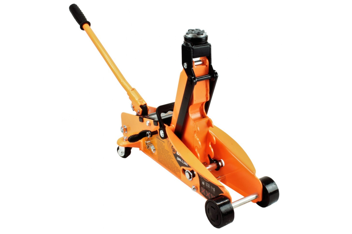 Домкрат гидравлический подкатной ДМК-2,5ФК Вихрь предназначен для поднятия автомобилей при шиномонтаже и ремонте. В целях безопасности все домкраты Вихрь оснащены защитой от перегрузки, которая не позволяет поднимать массу, превышающую допустимый максимум. Максимально допустимая масса 2,5 тонны, высота подхвата 140 мм, высота подъёма 390 мм. Оснащён трёхпозиционным страхующим фиксатором, который позволяет использовать домкрат как подставку под автомобиль. Поставляется в кейсе.