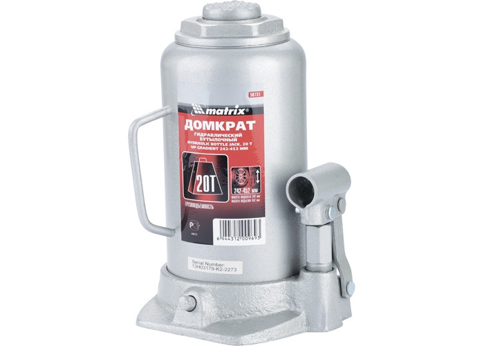 Домкрат 20 т гидравлический бутылочный h 244-452 мм MATRIX