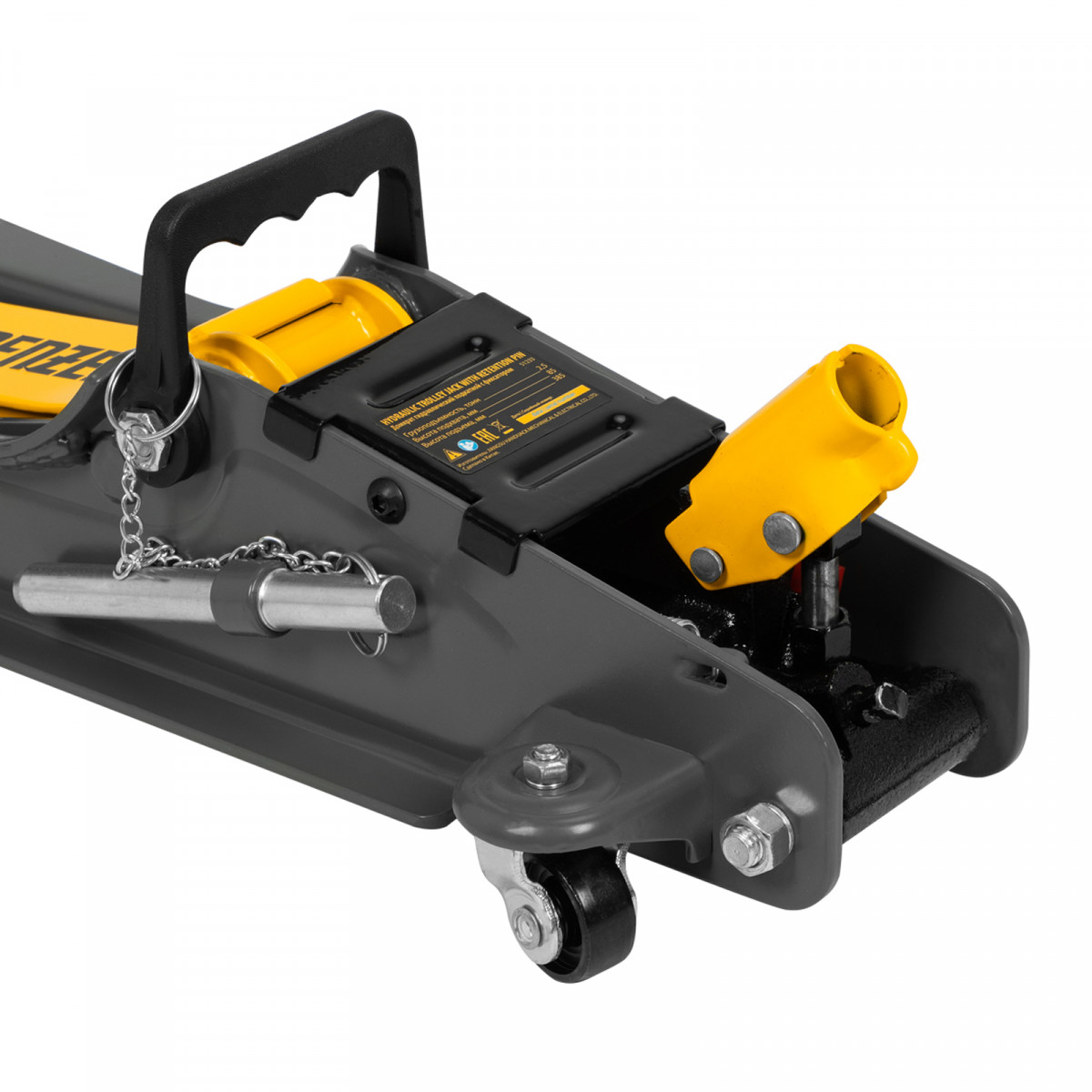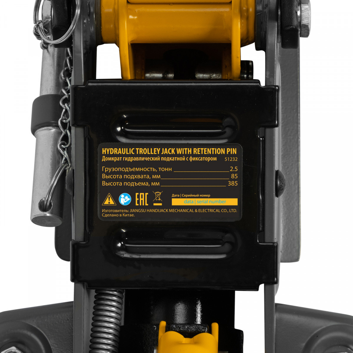 Домкрат гидравлический подкатной с фиксатором, 2,5 т, 85-385 мм Denzel