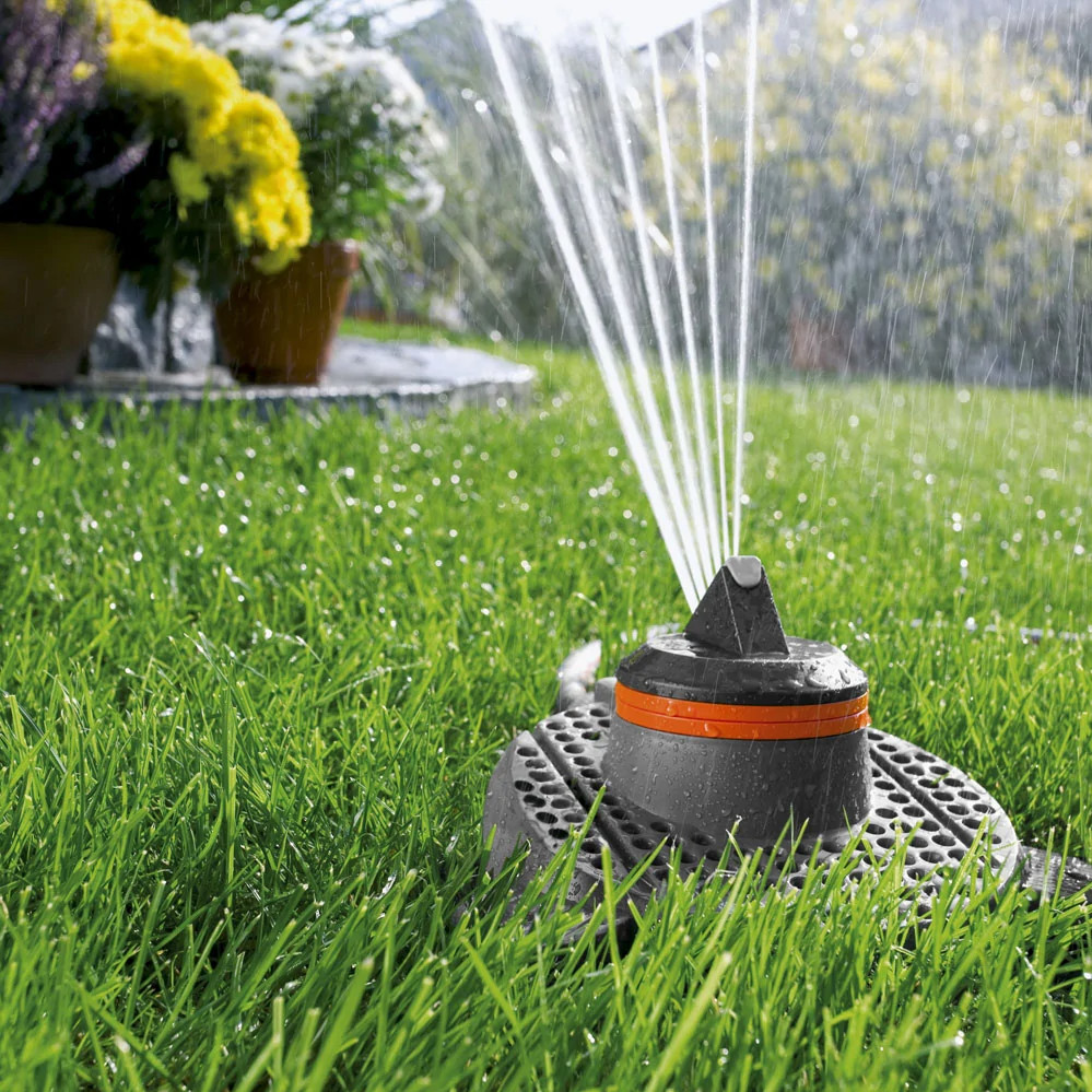 Дождеватель секторно-круговой Gardena Tango 02065-20.000.00 предназначен для полива газонов площадью от 9 до 310 м2 с возможностью регулировки дальности полива в пределах от 3 до 20 м с помощью специальных вентилей. Устройство оснащено съемным фильтром для воды. Сектор орошения регулируется от 5 до 3600. Дождеватель имеет прочное основание и надежно закрепляется с помощью металлических колышков даже на неровной и неустойчивой поверхности.