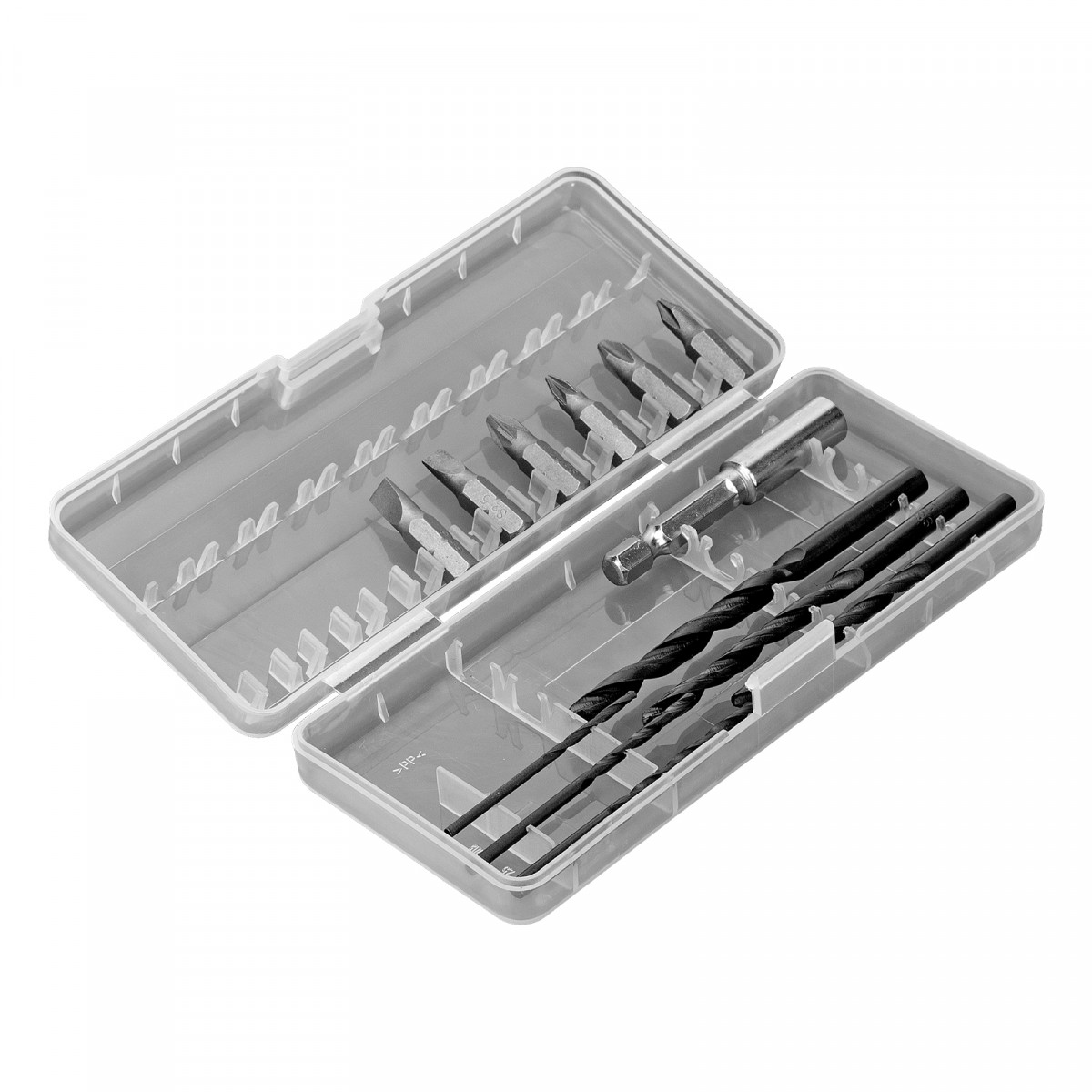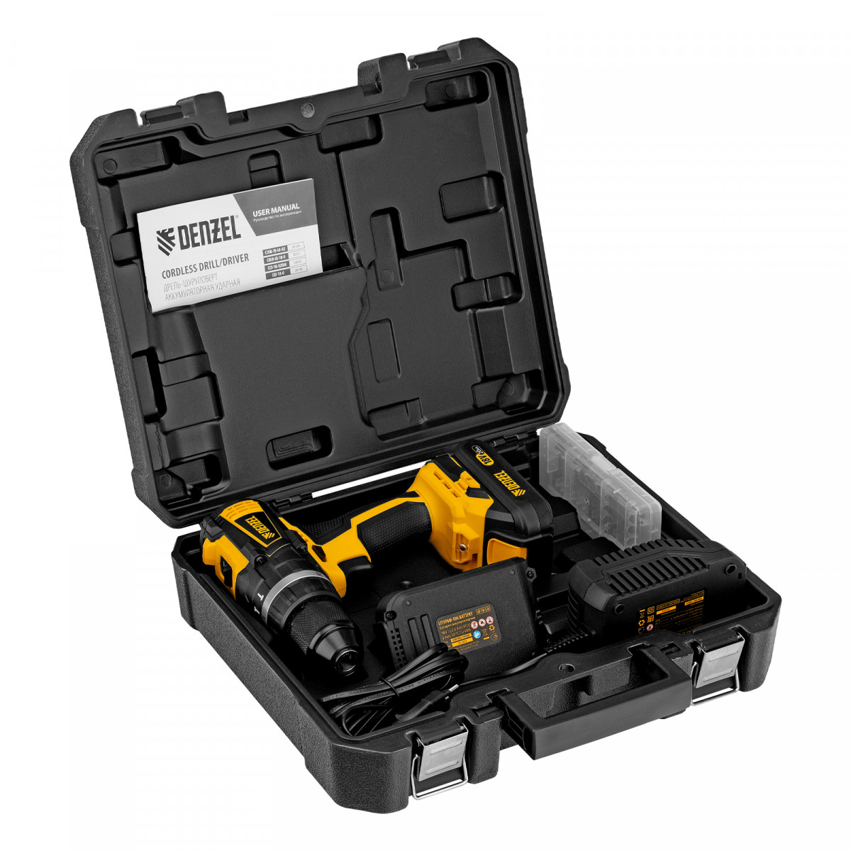 Дрель-шуруповерт аккумуляторная - 1 штБатарея аккумуляторная - 2 штУстройство зарядное - 1 штСверло спиральное по металлу - 6 штБита SL - 2 штБита PH - 2 штБита PZ - 2 штРуководство по эксплуатации с гарантийным талоном - 1 шт