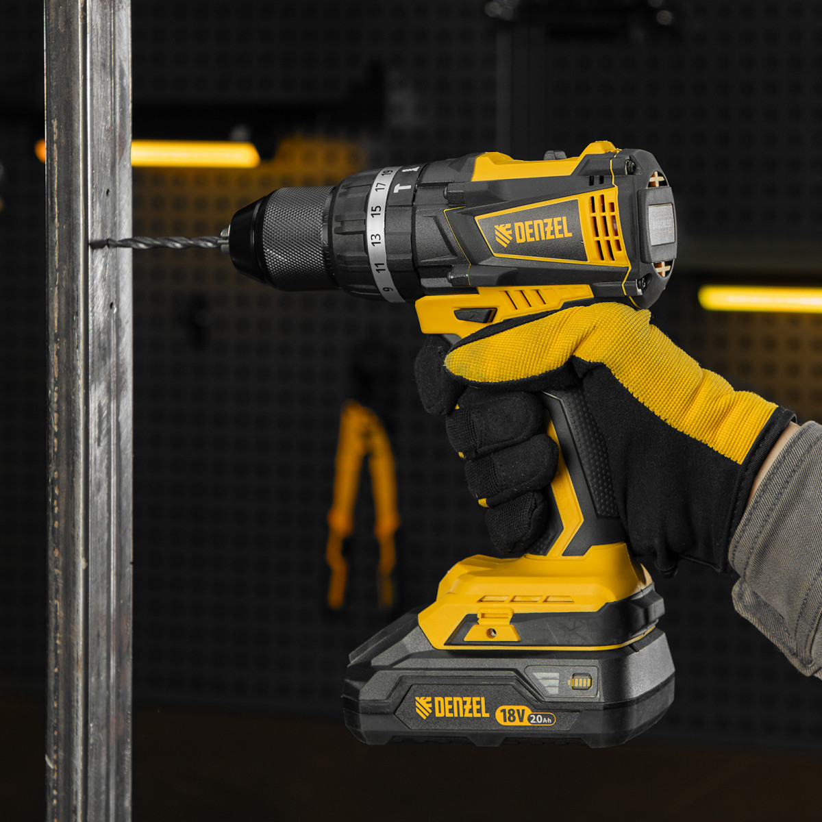 Дрель-шуруповерт аккумуляторная ударная бесщет CIDB-IB-18-02, Li-Ion, 18 В, 2 акк. Denzel