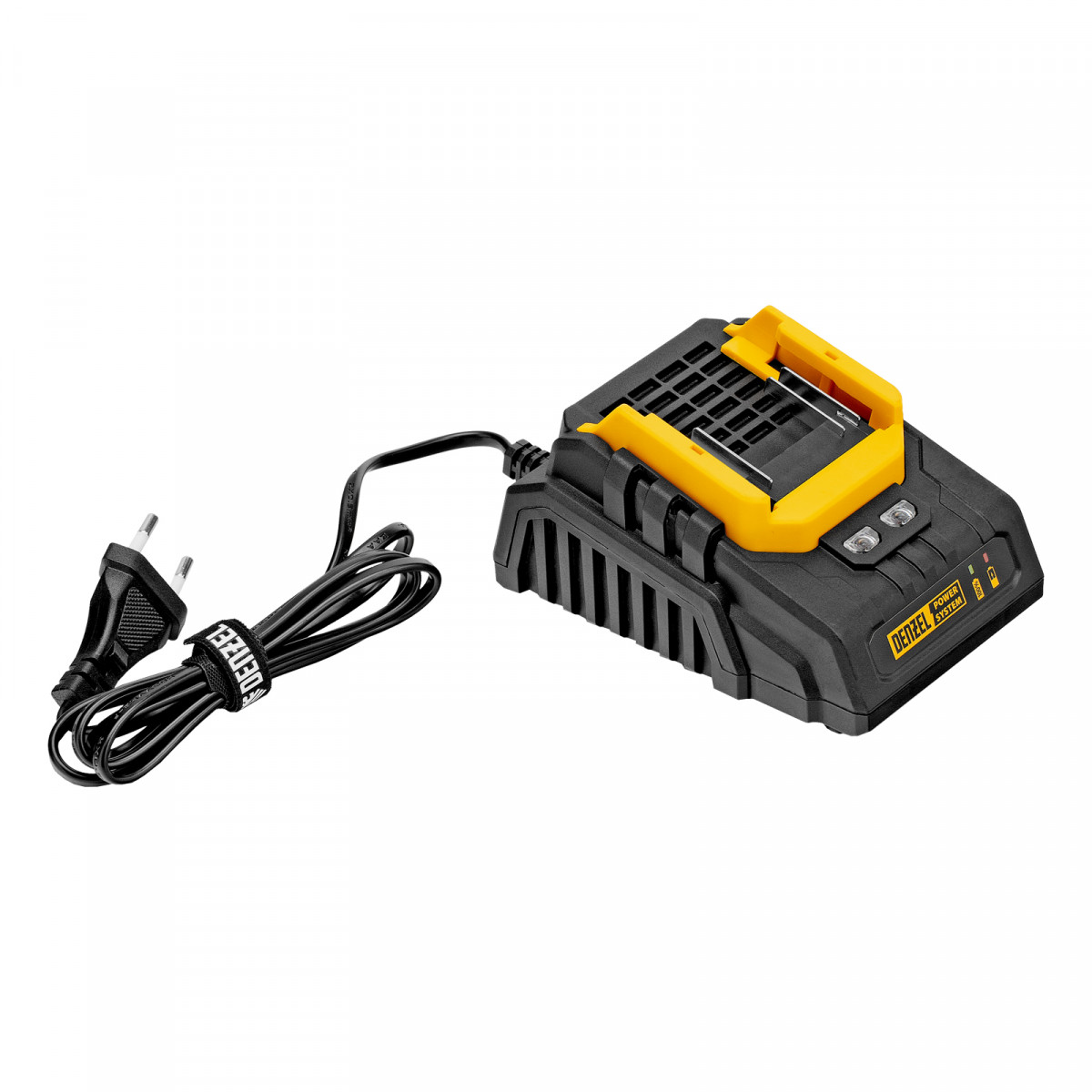 - Универсальность — аккумулятор Li-Ion емкостью 2 А·ч совместим со всеми инструментами единой платформы Denzel Power System 20V.