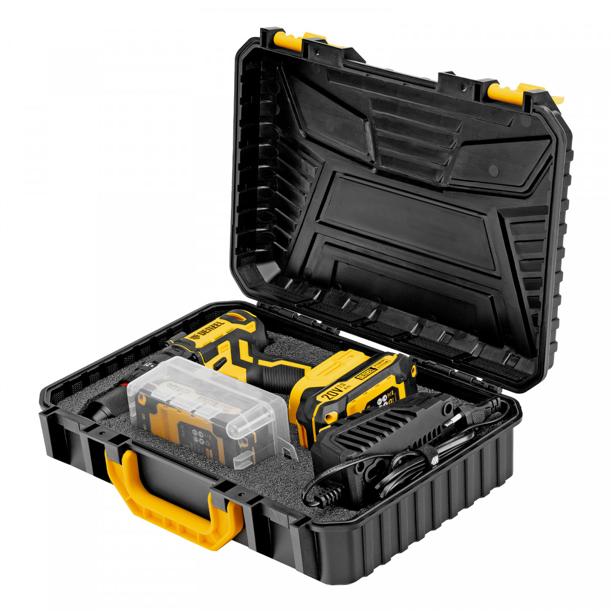 Дрель-шуруповерт аккумуляторная - 1 штБатарея аккумуляторная - 2 штУстройство зарядное - 1 штБита двухсторонняя - 1 штСверло - 2 штИнструкция по эксплуатации с гарантийным талоном - 1 штПластиковый кейс - 1 шт