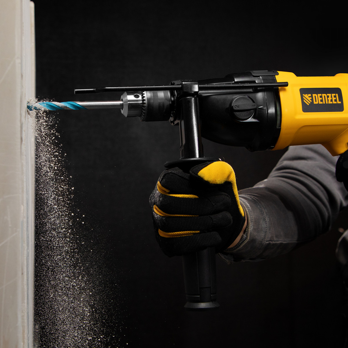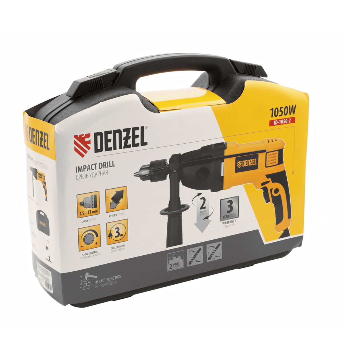 Дрель ударная ID-1050-2, 1050 Вт, 0-3000/0-1100 об/мин, 0-48000/0-17600 уд/мин, 2 скорости Denzel
