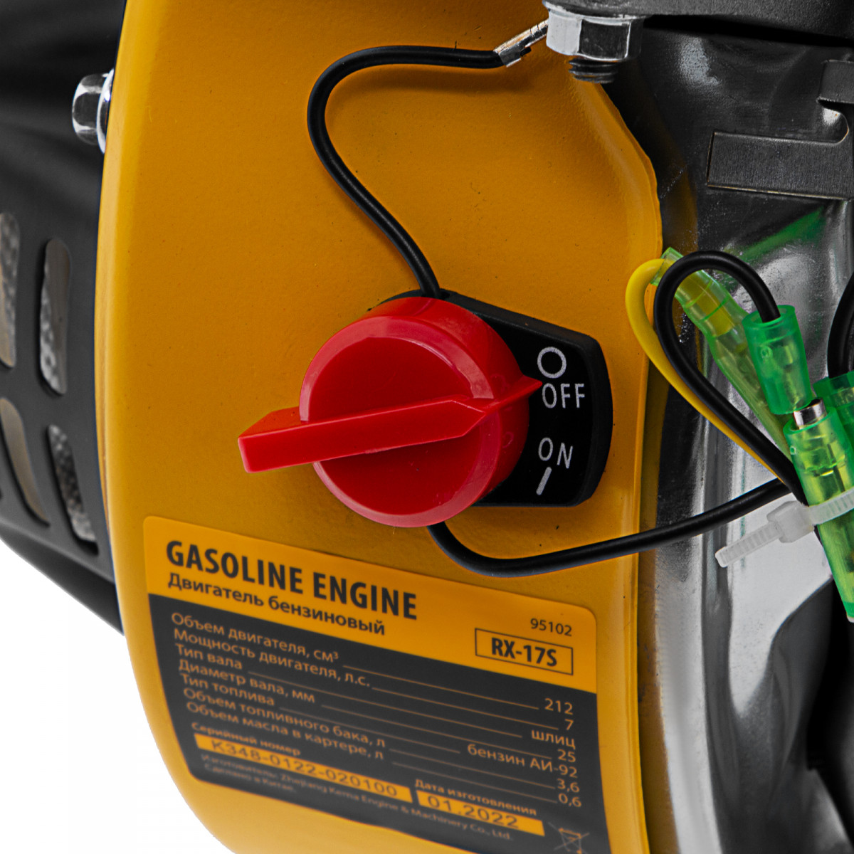 Четырехтактный бензиновый двигатель Denzel RX-17S 95102 мощностью 7 л. с. и объемом 212 см3, с типом горизонтального вала шлиц 25 мм, имеет ручной старт и воздушное охлаждение. Предназначен для использования в качестве привода садово-парковой и строительной техники (садовых измельчителей, мотопомп, бензиновых моек высокого давления и др.). Обеспечивает бесперебойное функционирование оборудования и эффективное выполнение сельскохозяйственных, строительных работ, а также решение прочих задач на загородном участке.