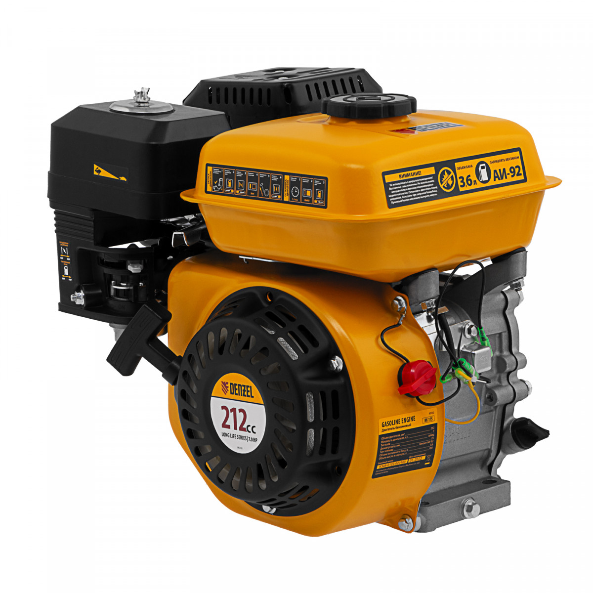 Двигатель бензиновый RX-17S, 7 л.с., 212 см3, горизонтальный вал шлиц 25 мм Denzel