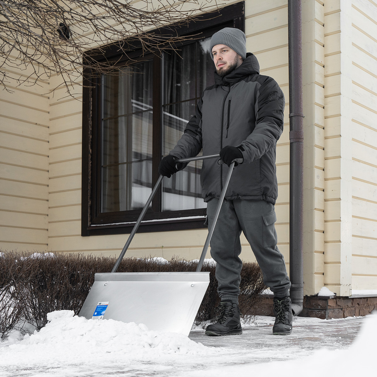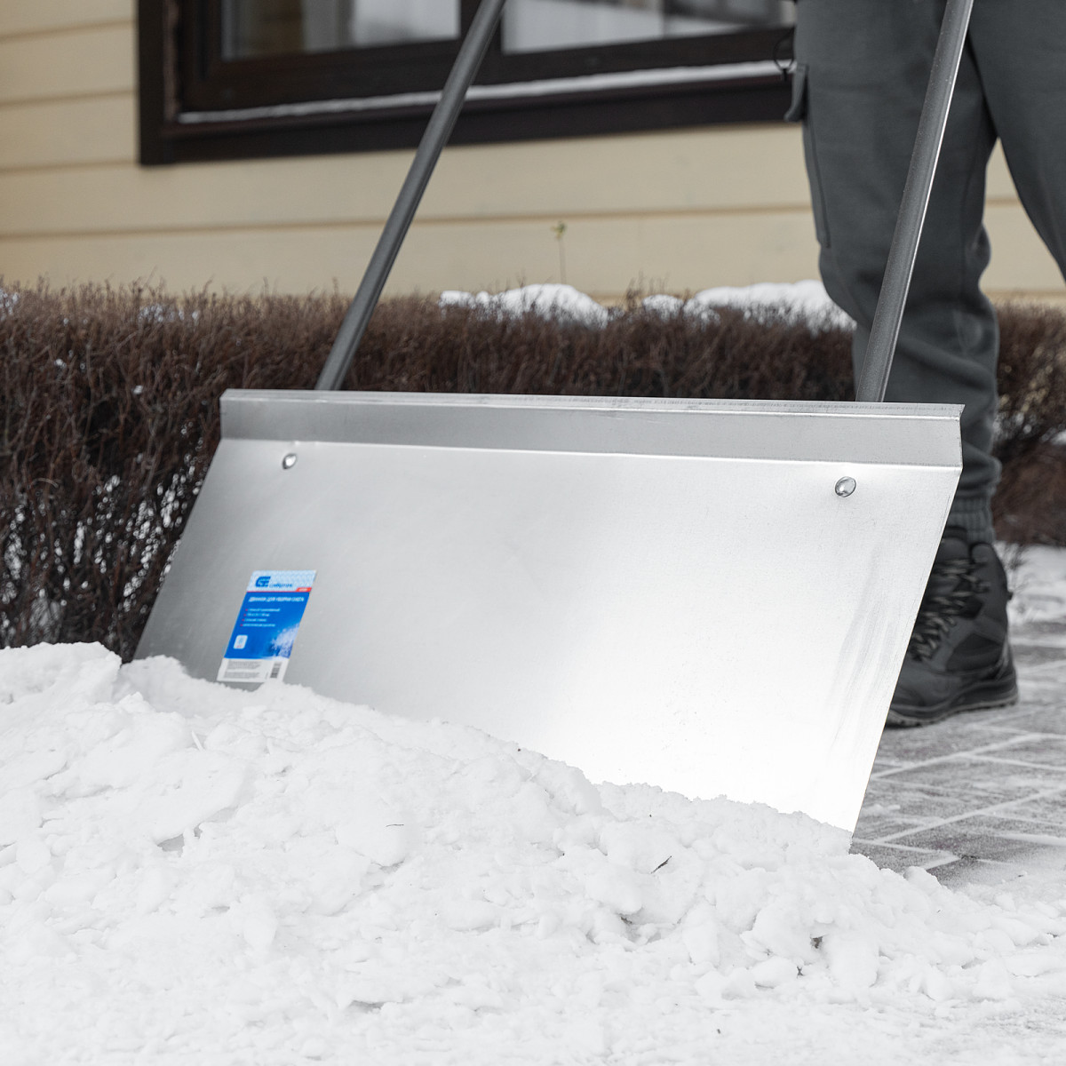 Стальной оцинкованный движок для уборки снега Сибртех 61520 размером 750 х 410 х 1100 мм, со стальной рукояткой, позволяет быстро расчищать участки большой площади. Широкая рабочая плоскость за один проход захватывает и сдвигает большое количество снега. Движок рассчитан на работу при температуре до -60 °C, поэтому может эксплуатироваться в суровых климатических условиях. Инструмент будет полезен для уборки пространства перед гаражом, придомовой территории или дачного участка.
