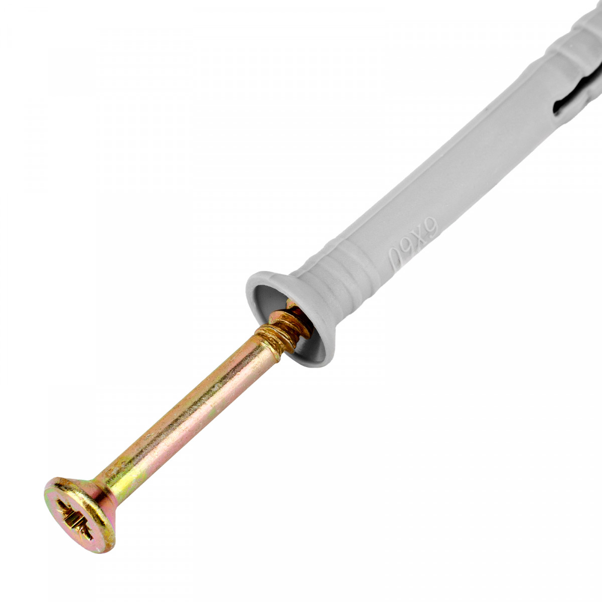 - Надежная фиксация в толще материала — ребра на дюбеле препятствуют ослаблению крепежа.