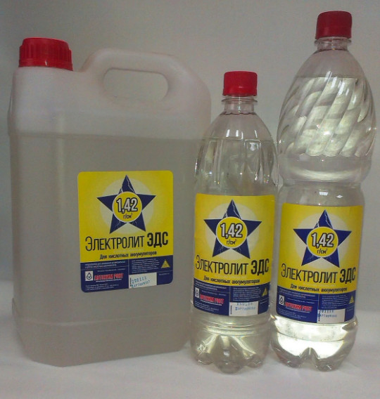 Электролит сернокислотный плотностью 1,42 используется в случае первого заполнения аккумуляторной батареи. Сухозяряженные АКБ требуют использование электролита этой плотности. В дальнейшем он разбавляется дистиллированной водой, чтобы получить необходимое значение плотности.