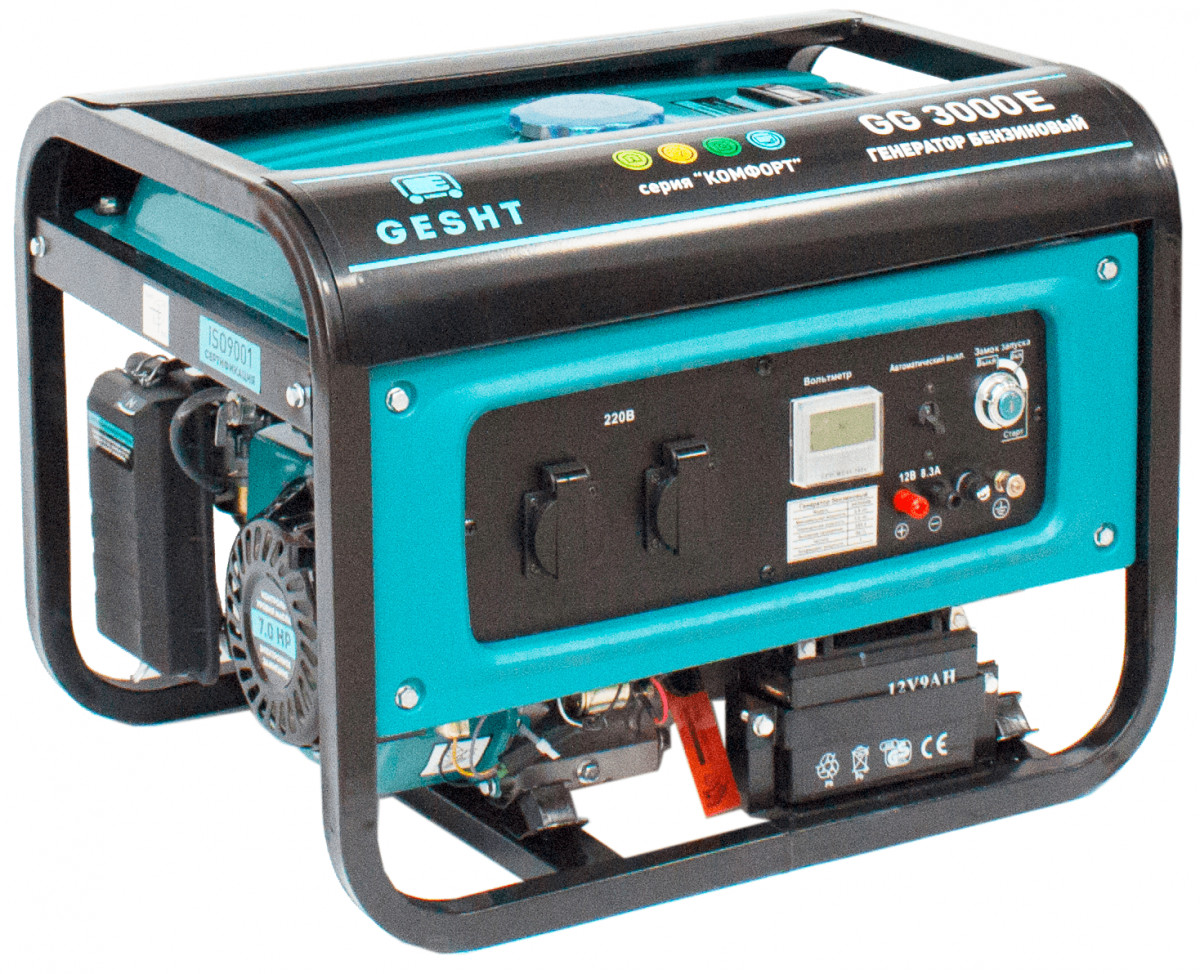 Бензиновый генератор Gesht GG3000Е разработан для выработки электроэнергии до 3 кВт. Удобная конструкция позволяет легко транспортировать генератор. Генератор выдает 220 В при силе тока в 16 А. Стабильную работу обеспечивает двигатель собственного производства. Данная модель считается полупрофессиональной и подходит как для дома, так и для небольших бизнес-объектов: кафе, магазинов, автомастерских и иных.
