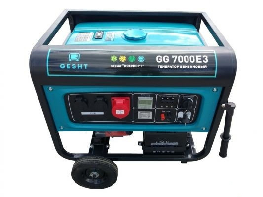 Бензиновый генератор Gesht GG7000E3 оснащен всеми необходимыми системами для безопасной работы и удобного использования оборудования. Изделие поставляется с транспортировочным комплектом: имеются рукоятки и колеса, а также два упора для повышения устойчивости. На корпусе присутствует отдельная розетка на 380 В. Значительная емкость бака позволяет работать без перебоев длительный промежуток времени, что удобно в быту и на производстве. Модель относится к серии комфорт со сниженным уровнем шума. Для безопасного использования встроен замок для запуска - производится только при повороте ключа.