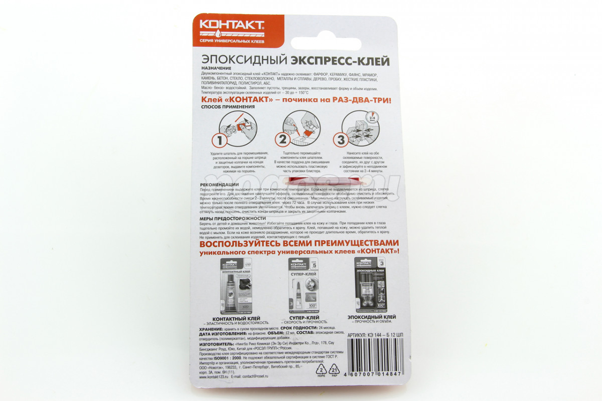 Эпоксидный клей "КОНТАКТ", прозрачный, 12 мл., бл.,арт. КЭ 144 - Б12 ШП