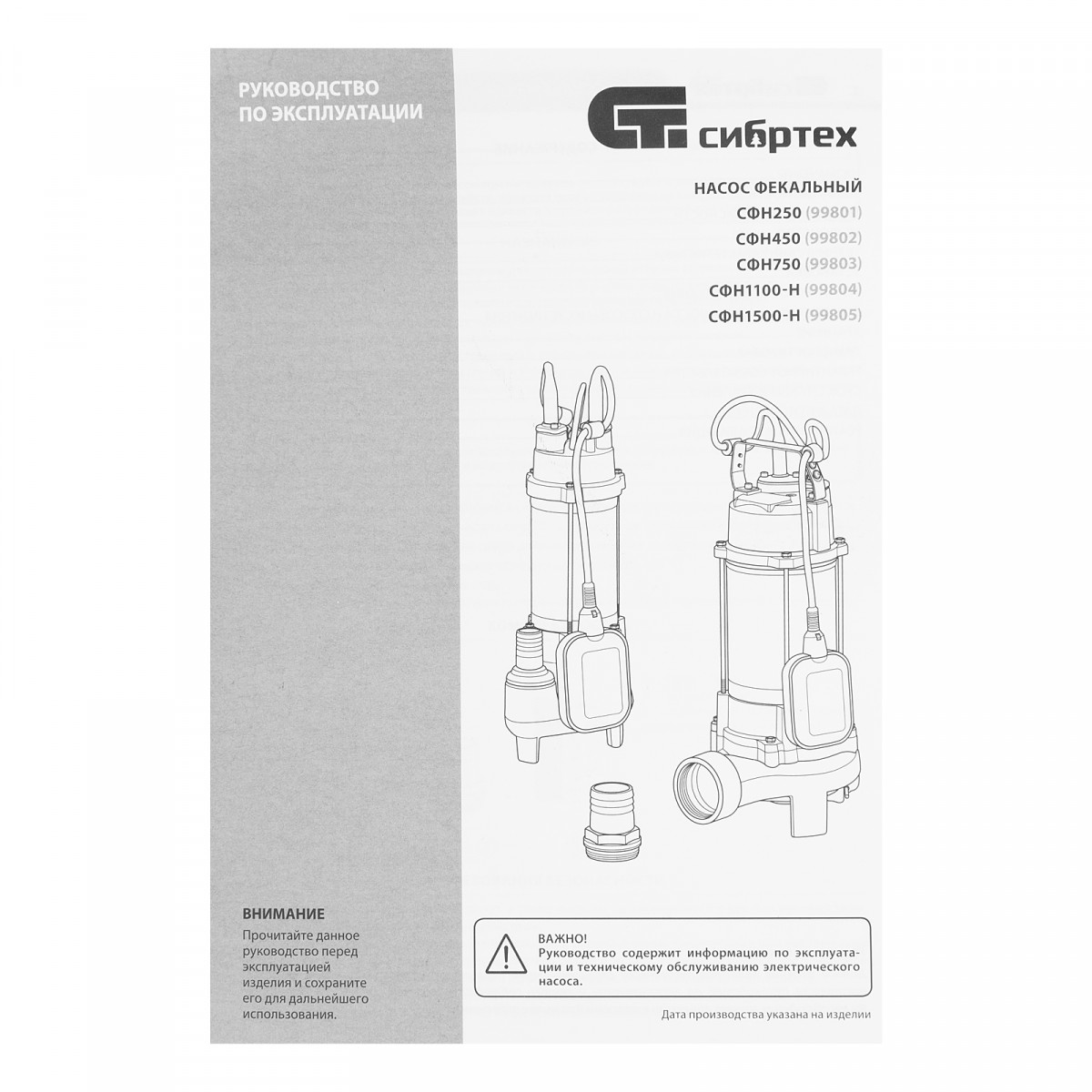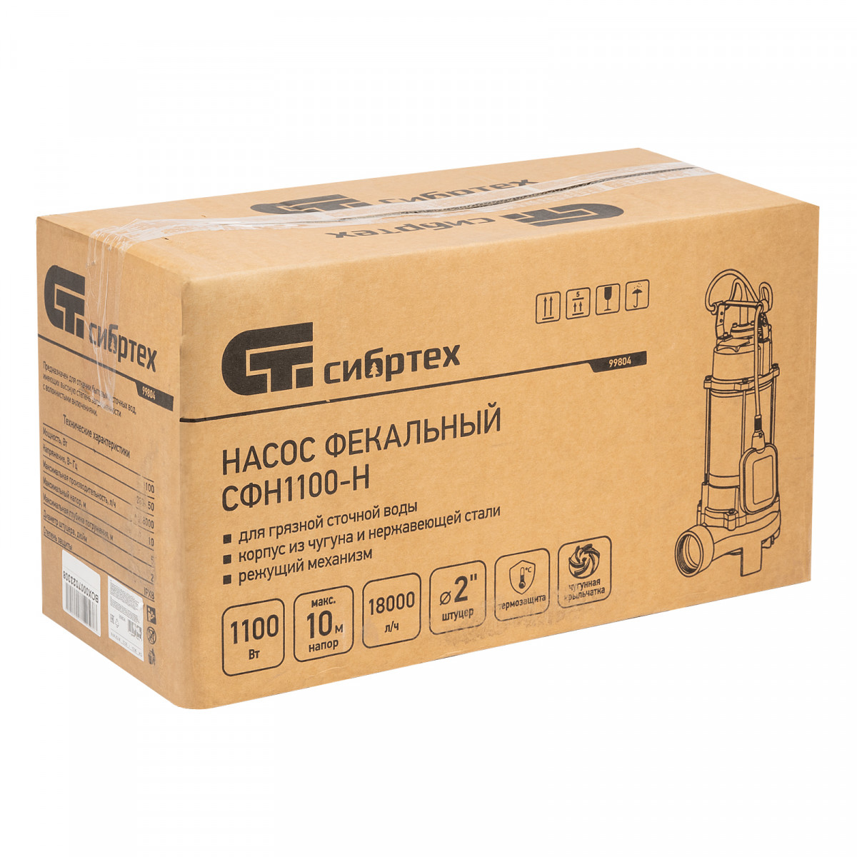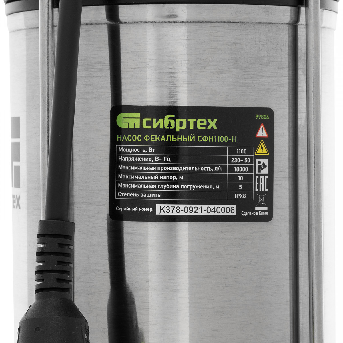 Фекальный насос СФН1100-Н, 1100 Вт, напор 10 м, 18000 л/ч, нож Сибртех