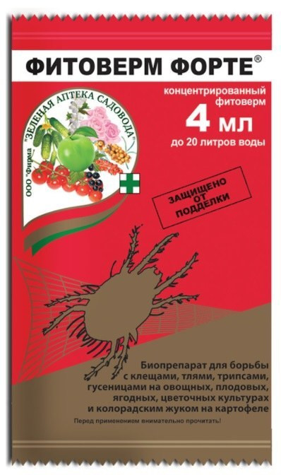 "Фитоверм" – это препарат четвертого поколения биологического происхождения. Он создан на основе продуктов жизнедеятельности микроорганизмов, находящихся в почве.Все чаще для обработки комнатных и садовых цветов, рассады и огородных культур применяется именно "Фитоверм". Цена пакета 4 мг – 16-18 р. При этом для борьбы с вредителями комнатных растений пакет содержит две ампулы для двух обработок. Фасовка по 4 мг применяется для работы в саду.Преимущества Препарат разлагается через 24 часа после применения.