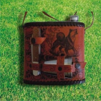 Фляга(обш. кожей), зажигалка, 3 стакана раскладных, Ложка, вилка, нож