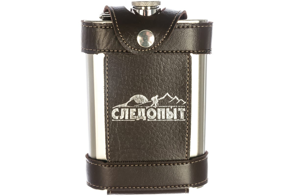 Фляжка СЛЕДОПЫТ-Flage в кож. чехле с тиснением, 260 мл, цв. корич